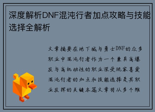 深度解析DNF混沌行者加点攻略与技能选择全解析