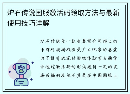 炉石传说国服激活码领取方法与最新使用技巧详解