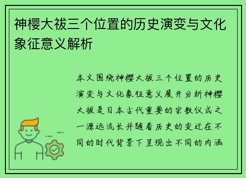 神樱大祓三个位置的历史演变与文化象征意义解析